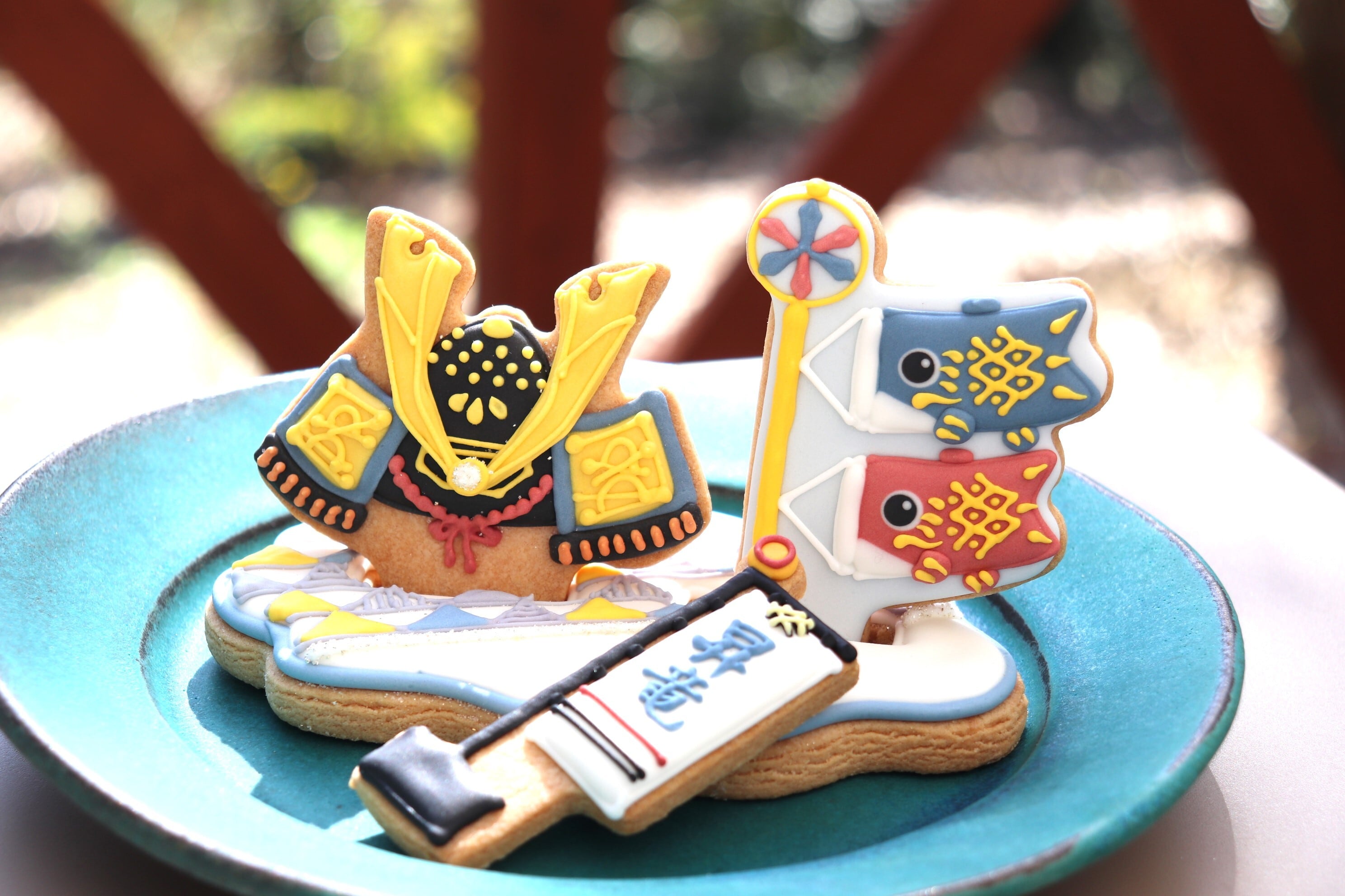 兜、鯉のぼり、旗、クッキープレートがセットになった、お子様が喜ぶこと間違いなしの子どもの日アイシングクッキーセットです。クッキープレートには、お好きな組み合わせでクッキーを立てることができます。